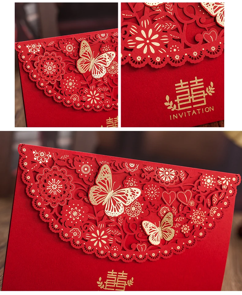 Red Double Butterfly Laser Cut Wedding Invitations Card 25 25 Inner Sheet 25 Envelopes Customized Printing Aliexpress Mobile